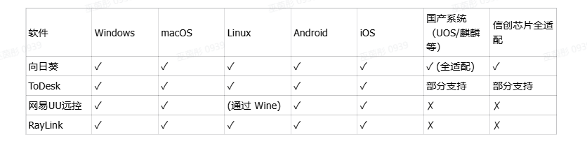 結論:向日葵在跨平臺,尤其是對國產信創操作系統和芯片的全棧適配方面最為全面深入;ToDesk和RayLink對主流平臺支持良好;UU遠控在Linux原生支持上稍有局限。