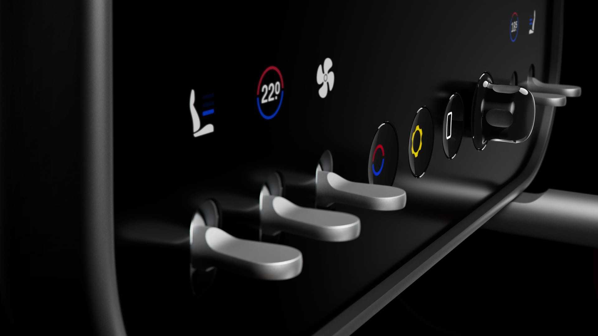 車內共配備三塊屏幕,分別位于儀表盤、中控及后排,所有顯示字體均為定制開發。儀表盤采用雙層重疊OLED面板,由三星參與研發,可呈現高對比度與鮮艷色彩。中控屏幕支持球形轉軸調節,可自由轉向駕駛員或副駕駛,并配備掌托以減少操作時的低頭動作。屏幕右側集成多功能球形表,可切換時鐘、計時器、指南針及彈射起步指南;頂部左側屏幕顯示時速、功率等參數,中部大屏則負責CarPlay、空調調節及車輛設置等功能。
