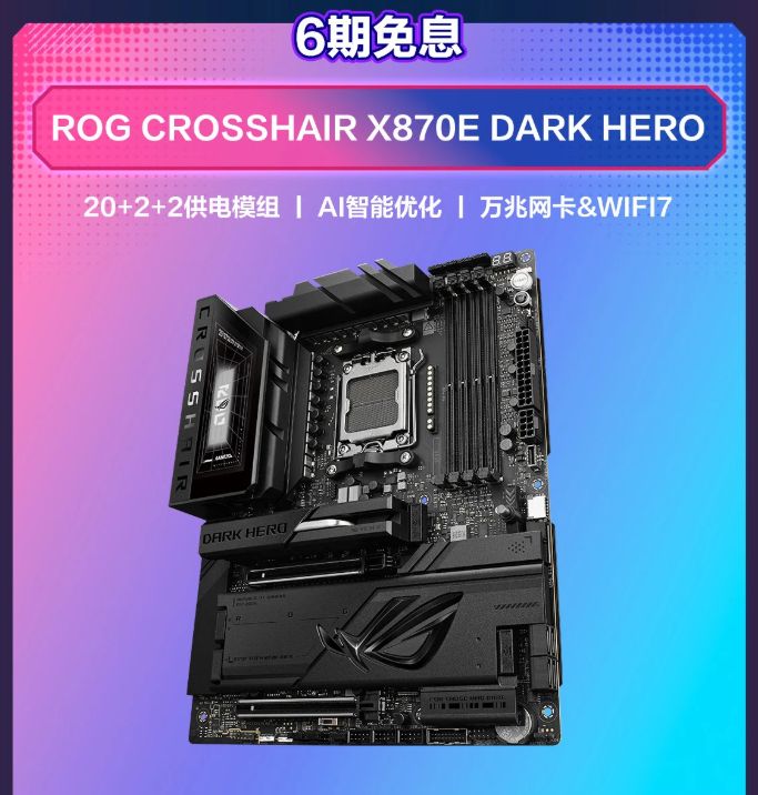 ROG CROSSHAIR X870E DARK HERO主板專(zhuān)為硬核玩家打造,采用經(jīng)典黑配色,詮釋低調(diào)而富有質(zhì)感的奢華風(fēng)格。搭載Polymo動(dòng)態(tài)燈效2.0并支持神光同步,讓玩家輕松打造個(gè)性化燈效。該主板單品售價(jià)4899元,京東商城可享6期免息,搶購(gòu)鏈接:https://item.jd.com/100318614000.html ;華碩商城搶購(gòu)鏈接:https://www.asus.com.cn/store/goods/detail?productId=42269745026303