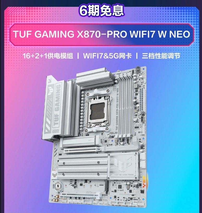 注重性價(jià)比的A飯可選擇新發(fā)布的TUF GAMING X870-PRO WIFI7 W NEO主板。淺色PCB加上大面積皓月白散熱裝甲,打造出極具金屬質(zhì)感和科技感的外觀。精選TUF軍規(guī)用料,秉承堅(jiān)固耐用、持久穩(wěn)定的精神,將華碩日益精進(jìn)的電競(jìng)黑科技融入其中,助力玩家一路過(guò)關(guān)斬將、所向披靡。該主板單品售價(jià)2549元,京東商城可享6期免息,購(gòu)買(mǎi)鏈接:https://item.jd.com/100238768727.html ;華碩商城購(gòu)買(mǎi)鏈接:https://www.asus.com.cn/store/goods/detail?productId=42269746004793