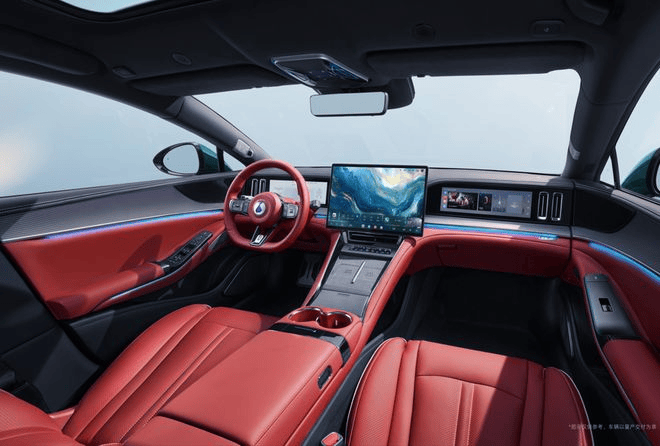 內飾設計以“熔巖紅”為主色調,搭配真碳纖維飾板,營造出豪華與運動兼具的座艙氛圍。一體式運動座椅采用頸部高亮黑裝飾,并印有“Z9GT”專屬標識,強化身份認同感。駕駛區域配備三輻式多功能方向盤、BOOST競速撥片及金屬懷擋桿,空調出風口采用鍍鉻包邊工藝,細節處彰顯精致感。