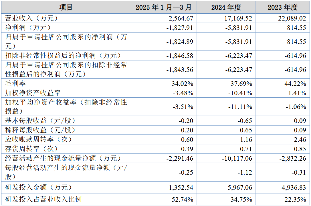 然而,在財務數據上,宏泰科技尚未實現盈利。2023年和2024年,公司分別實現營業收入2.21億元和1.72億元,但扣非后歸母凈利潤分別為-615萬元和-6223萬元。股轉公司在審核問詢中要求公司說明收入下降的主要原因、業務是否存在持續下滑風險,并測算實現盈虧平衡的時間。