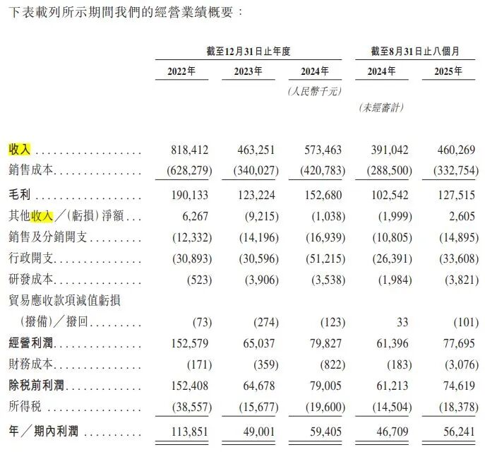 根據(jù)招股書披露的財務(wù)數(shù)據(jù),報告期內(nèi)(2022年至2025年1-8月)公司營業(yè)收入分別為8.18億元、4.63億元、5.73億元和4.60億元,凈利潤分別為1.14億元、0.49億元、0.59億元和0.56億元。值得注意的是,2023年公司營業(yè)收入同比下降43.4%,凈利潤縮水57%,主要原因是公共衛(wèi)生事件影響消退后,消費者娛樂活動選擇增多,釣魚裝備市場需求出現(xiàn)自然回落。不過2024年業(yè)績已呈現(xiàn)回升態(tài)勢。