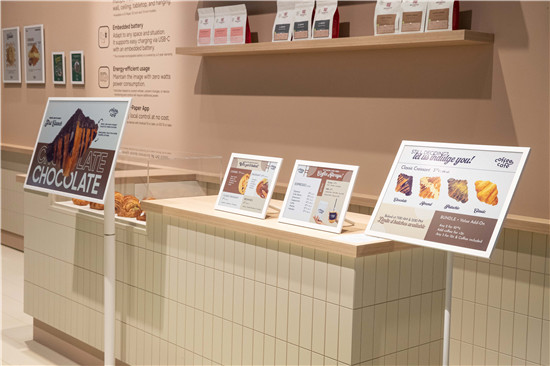 全尺寸三星彩色電子紙均采用超低功耗的數(shù)字墨水技術(shù),僅在更新內(nèi)容時消耗電力(2)。通過專用的三星彩色電子紙APP,零售店員可直接通過移動設(shè)備管理本地內(nèi)容,減少頻繁重新印刷帶來的運營負擔,同時不影響店鋪風(fēng)格與觀感。