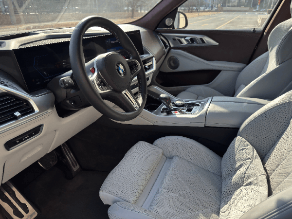 進入車內,寶馬XM的內飾將豪華與科技感完美融合,堪稱寶馬品牌內飾設計的巔峰之作。數字化配置誠意滿滿,搭載第8代BMW iDrive操作系統的一體式懸浮曲面屏十分吸睛,由14.9英寸中央觸控屏和12.3英寸數字儀表盤組成,屏幕顯示清晰、操作流暢。車機系統延續了寶馬一貫的風格,上手毫無難度,無線CarPlay、語音控制等功能一應俱全,為用戶帶來出色的科技體驗。