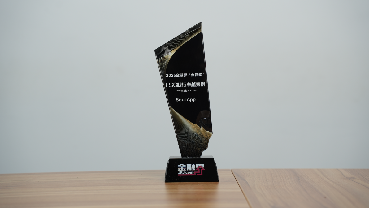 如果說 AI 是向上的牽引力,那么 ESG 就是平臺向下扎根的生命線。2025年,Soul 在這一領域贏得了金融界“ESG 踐行卓越案例”、《北京商報》“年度 ESG 新銳榜樣”以及運營商財經網“2025 年度 ESG 創新先鋒企業”等榮譽。