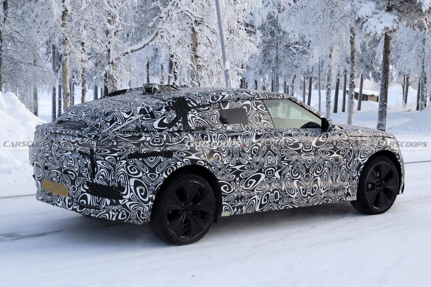 從曝光的前臉設計來看,新車采用封閉式格柵造型,整體線條更為圓潤流暢。標志性的蚌殼式發動機艙蓋得以保留,搭配細長型LED頭燈組,營造出更具未來感的視覺效果。下方寬大的進氣口設計雖為裝飾性元素,但強化了車輛的運動氣質。車身側面變化顯著,前擋風玻璃傾斜角度增大,車頂線條從B柱開始急速下滑,形成優雅的溜背造型。這種設計雖提升了整車動感,但可能對后排頭部空間和行李廂容積產生一定影響。