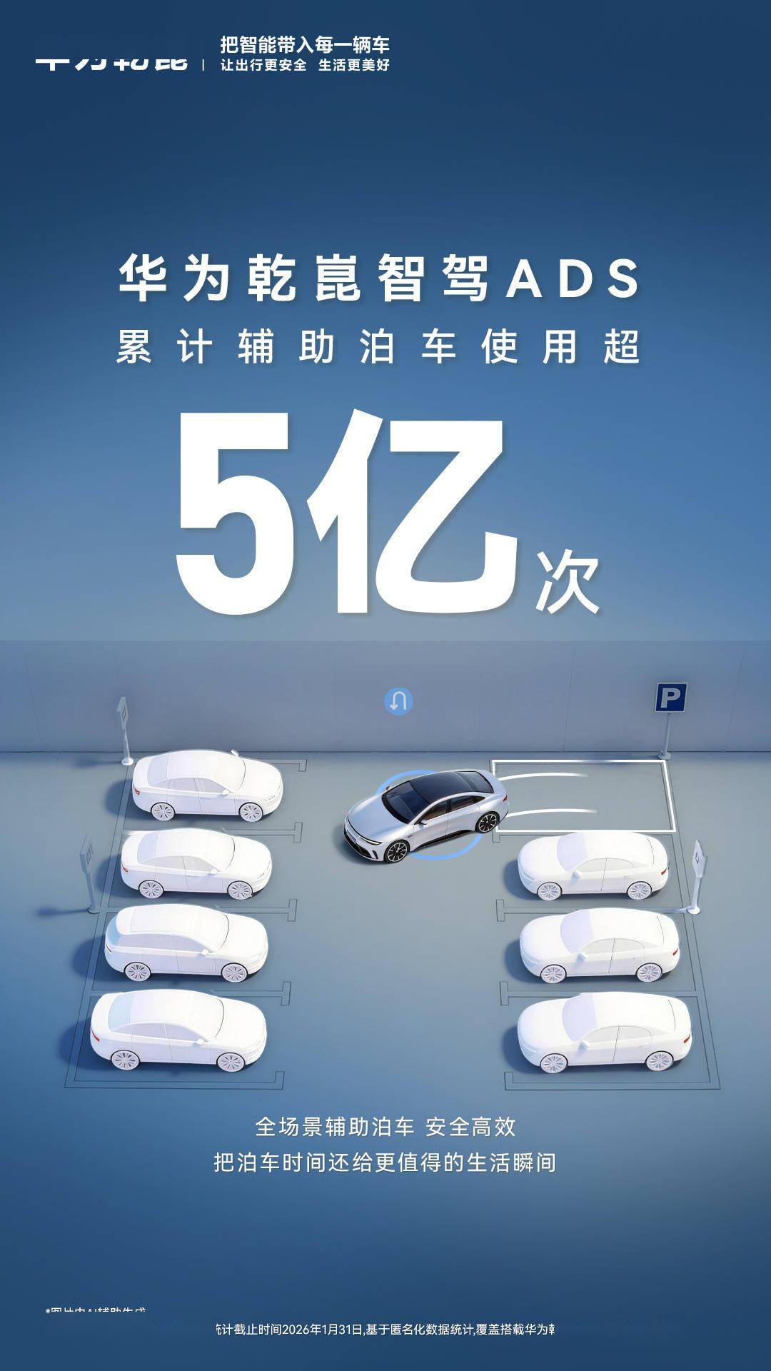 華為乾崑智能汽車解決方案近日通過官方渠道披露,其自主研發的乾崑智駕ADS系統累計輔助泊車次數已突破5億次。該數據統計周期截至2026年1月31日,基于搭載該系統的全量車型匿名化數據匯總得出,覆蓋了從經濟型到高端豪華的多品類車型。