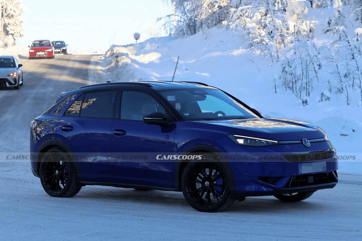 近日,外媒捕捉到了T-Roc R在開發收官階段的路試諜照。從曝光的信息來看,新車采用了R系列標志性的Lapiz Blue藍色涂裝,搭配20英寸黑色多輻輪圈和藍色制動卡鉗,視覺效果極具沖擊力。與早期測試車不同,此次亮相的車型配備了實心剎車盤,而打孔剎車盤則可能作為選裝配置提供。