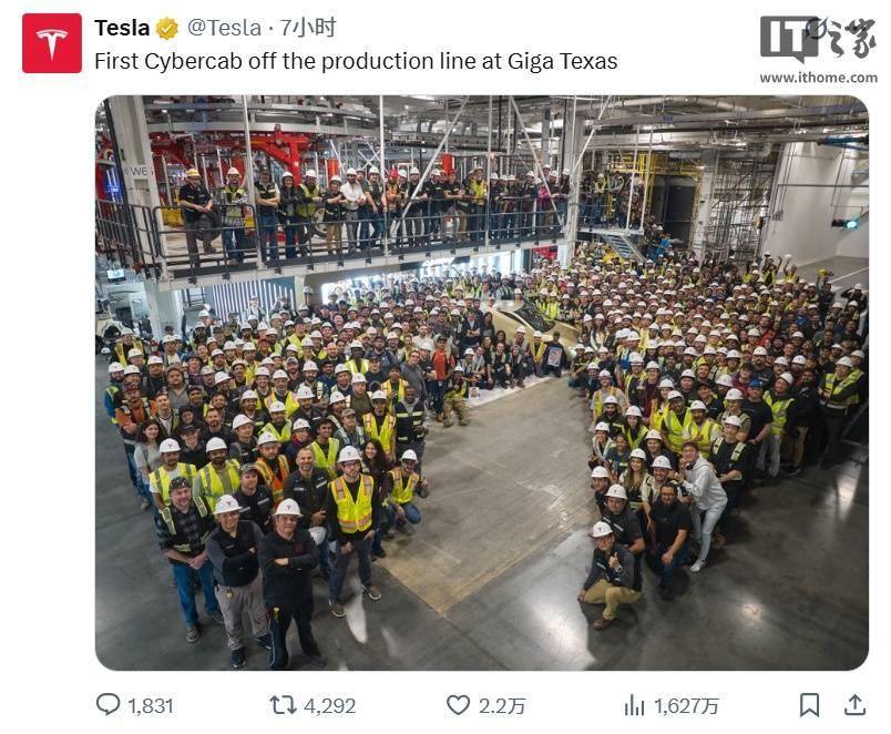 特斯拉里程碑:首輛無方向盤踏板Cybercab在美國得州超級工廠下線