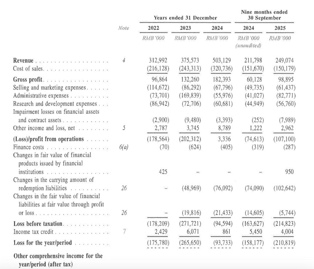 財務數據揭示成長陣痛。2022-2024年,公司營收從3.13億元增至5.03億元,復合增長率26.8%,但同期凈虧損累計達5.36億元。2025年前三季度營收2.49億元,凈虧損卻擴大至2.11億元。公司解釋稱,高額虧損源于持續的技術升級投入與商業化前期成本。截至2025年9月末,現金儲備僅剩4249萬元,流動性壓力凸顯。股權結構顯示,管理層通過直接持股與員工持股平臺合計控制27.39%股份,君聯資本、BAI資本等機構投資者合計持股超26%。