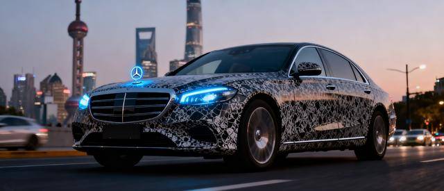 在上海陸家嘴的晚高峰車流中,一輛被偽裝布包裹的黑色轎車悄然駛過。盡管車身被嚴(yán)密覆蓋,但修長的輪廓與獨(dú)特的車身比例,仍讓人一眼便認(rèn)出這是奔馳S級。更引人注目的是,偽裝布下隱約透出的藍(lán)光——正是新一代S級標(biāo)志性的發(fā)光三叉星徽立標(biāo)。這代車型海外發(fā)布僅一個(gè)月便現(xiàn)身國內(nèi)測試,如此迅速的引進(jìn)節(jié)奏,似乎暗示著奔馳正面臨來自國產(chǎn)豪華車型的強(qiáng)烈挑戰(zhàn)。