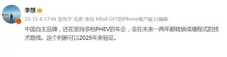 曾幾何時,理想汽車創始人李想在社交平臺上拋出一個大膽預測:未來主打多擋插混的自主品牌車企,大概率會轉向單擋插混或增程式電動車領域。這一觀點當時猶如一顆投入平靜湖面的石子,激起千層浪,在業內引發了激烈爭論,不少人對其口誅筆伐,言辭頗為激烈。然而,時光流轉,到了2025 - 2026年,市場的發展態勢卻似乎印證了李想的先見之明,這一轉變讓眾多業內人士和消費者都為之驚嘆。