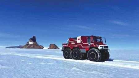 測試數據顯示,這款新型載具在南極五種典型地形中展現出卓越性能:軟雪路面時速達28公里,硬雪路面提升至42公里,堅冰區域更以65公里時速穩定行駛,滿油續航里程突破700公里。相較傳統履帶式載具15公里的時速,“雪豹”實現了機動性能的質的飛躍。在中山站至格羅夫山區域的測試中,車輛連續12小時穿越能見度僅3米的暴風雪,單程往返263公里完成緊急物資運輸,開創了南極內陸地面快速運輸的先河。