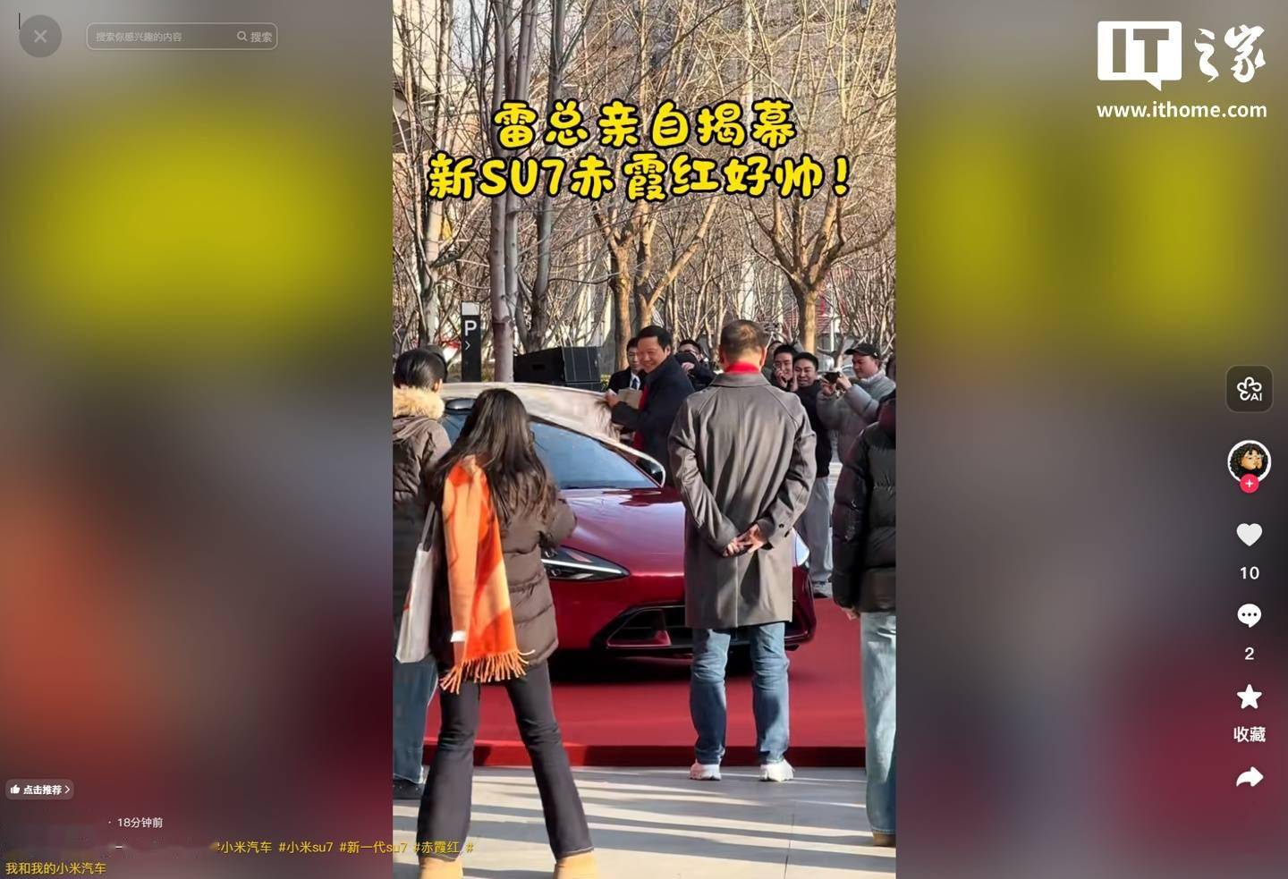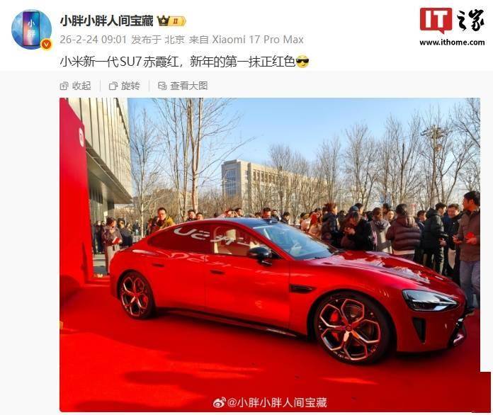 近日,小米汽車再度成為行業焦點,其新一代SU7車型的“赤霞紅”配色正式亮相。據博主@乖乖嘞阿蘭發布的視頻顯示,雷軍親自為這款新配色揭幕,雖然受拍攝角度限制未能完全展示全貌,但深紅色系的“赤霞紅”在鏡頭下呈現出類似酒紅色的質感,引發網友熱議。隨后,小米集團高級傳播經理@小胖小胖人間寶藏補充發布了多角度外觀圖,并稱之為“新年的第一抹正紅色”,進一步點燃了市場期待。