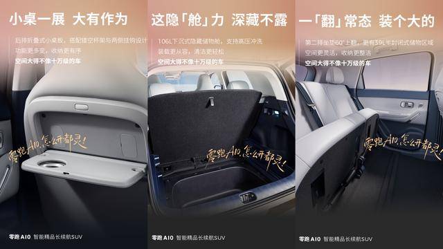 零跑汽車近日正式揭曉了旗下全新A10純電小車的座艙設計亮點,這款主打空間靈活性與實用性的車型,憑借多項創新設計引發市場關注。作為一款面向年輕消費群體的純電小車,A10在儲物空間與乘坐體驗上進行了深度優化,展現出獨特的競爭力。