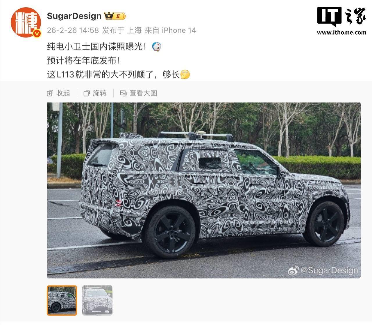 近日,博主@SugarDesign曝光了一組路虎純電“小衛士”的國內實車諜照,引發廣泛關注。據透露,這款新車有望于今年年底正式發布。與此同時,外媒Auto Express也在不久前公布了同款車型的諜照,進一步印證了其即將面世的消息。
