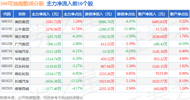 從個股表現來看,華域汽車以0.77%的漲幅領漲成份股,成為當日為數不多的上漲標的;而石頭科技則以3.59%的跌幅位居跌幅榜首位,領跌成份股。其余成份股漲跌幅度均相對有限,市場整體情緒偏謹慎。
