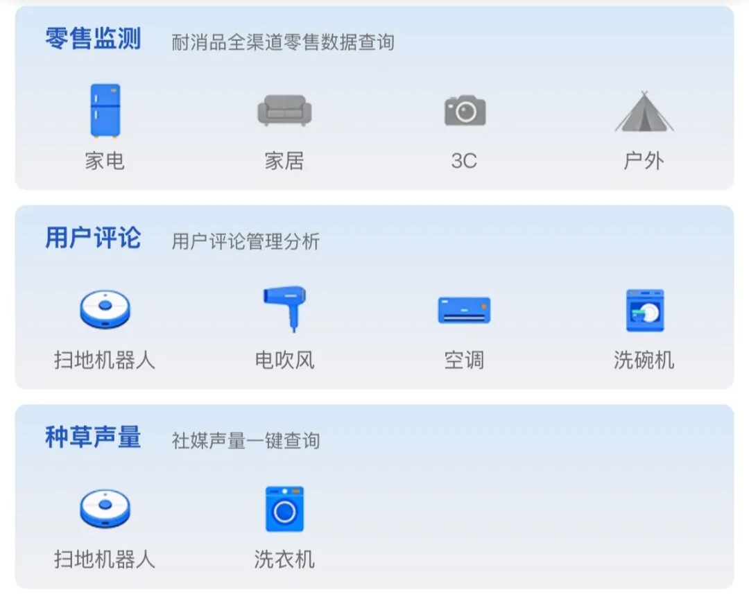 零售監(jiān)測數(shù)據(jù):幫助企業(yè)在查詢基礎(chǔ)上挖掘跨品增長新機會。本次零售監(jiān)測數(shù)據(jù)不再局限于家電品類,而是從原有的家電數(shù)據(jù)擴展至家電、家居、3C數(shù)碼、戶外運動4大零售領(lǐng)域,200+細(xì)分品類,所有數(shù)據(jù)源自真實銷售數(shù)據(jù),無論是分析自身企業(yè)發(fā)展,還是尋找跨界的機會,都極具參考性。數(shù)據(jù)渠道覆蓋京東、天貓、淘寶、抖音、快手等五大電商平臺,讓企業(yè)更了解各平臺銷售信息,合理布局線上市場。
