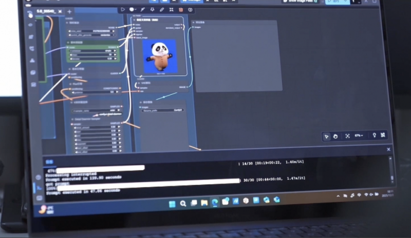 影片導演坦言:“傳統動畫流程是我們來親手一幀一幀畫出來,AIGC動畫是由我們來設計一套指令,讓AI幫我們批量生成出來,AI 工作流效率較傳統提升5倍。但是AIGC創作極度依賴設備性能,在華碩ProArt 創16的算力加持下,爆炸、奔跑等大場面都絲滑流暢,每個環節都能實時查看,大大提高了創作效率。”