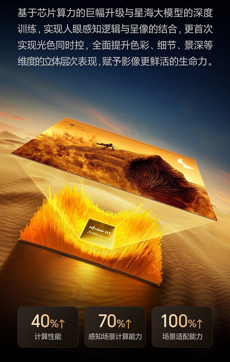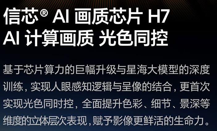 這正是海信信芯?AI畫質芯片 H7 展現其戰略價值之處。作為全球首顆光色同控AI畫質芯片,它首次解決了行業級難題:當背光從黑白變成彩色,如何讓芯片理解并同步控制“光的亮度”與“色的純度”?
