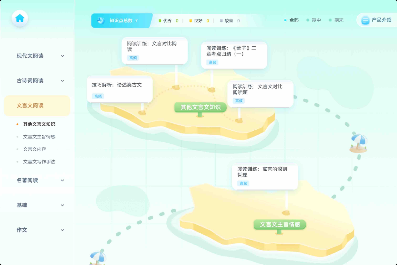 大語文方案聚焦閱讀與寫作核心能力。閱讀模塊構建158個小學、705個初中知識點體系,聯合北師大開發"精讀營"包含72本獲獎書籍,通過思辨問題培養深度思考能力。寫作輔導采用AI對話喚醒真實經歷,生成個性化提綱后進行針對性批改。英語模塊則提供從啟蒙到中學的完整方案:啟蒙階段引入BBC王牌動畫構建語言環境;小學階段通過分級閱讀、AI口語陪練實現多場景復現;中學階段采用中高考同源技術進行作文批改與口語模擬。