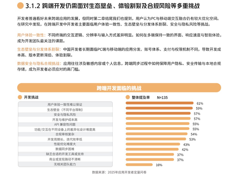 首要挑戰是難以承受的成本之重。高達61%的開發者首要顧慮,在于如何保證PC與移動兩端用戶體驗的一致性。為兩套獨立的分發、賬號與支付生態分別開發維護,不僅意味著高昂的人力與時間成本,更讓版本同步與體驗統一成為巨大難題。此外,技術層面的兼容性挑戰與性能優化瓶頸,構成了堅實的技術壁壘。