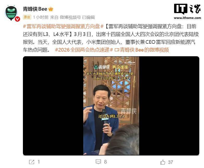 全國人大代表、小米集團創始人兼董事長雷軍在出席相關會議期間,就新能源汽車領域備受關注的輔助駕駛問題發表了看法。他特別提醒廣大駕駛者,在使用汽車輔助駕駛功能時務必保持高度警惕。