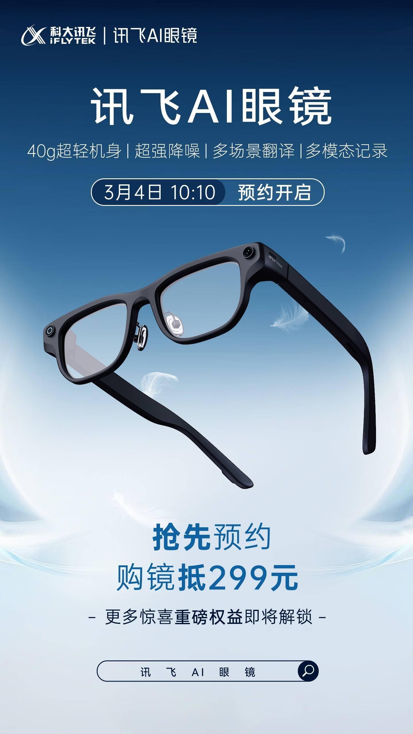 科大訊飛近日在世界移動通信大會上推出了一款創新產品——訊飛AI眼鏡,這款專為跨語言交流設計的智能設備以僅40克的超輕重量引發關注。目前該產品已在京東平臺開啟預約通道,雖然具體售價和正式發售日期尚未公布,但官方透露提前預約可享受299元抵扣優惠。