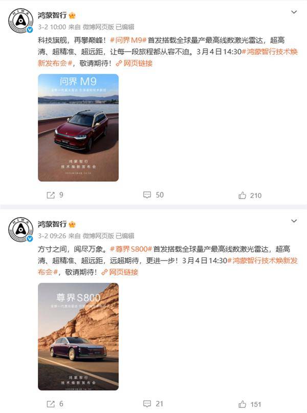華為今日宣布,將在鴻蒙智行技術煥新發布會上正式推出新一代激光雷達,這一技術突破標志著智能駕駛感知領域進入全新發展階段。問界M9與尊界S800兩款車型成為首批搭載該技術的量產車型,憑借其超高清、超精準、超遠距的感知能力,為高階自動駕駛提供了關鍵硬件支撐。