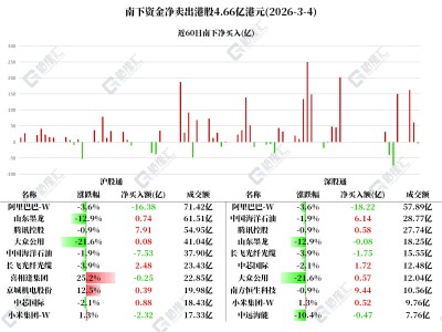 圖解丨南下資金大幅凈賣出阿里34.5億港元,逆勢加倉騰訊