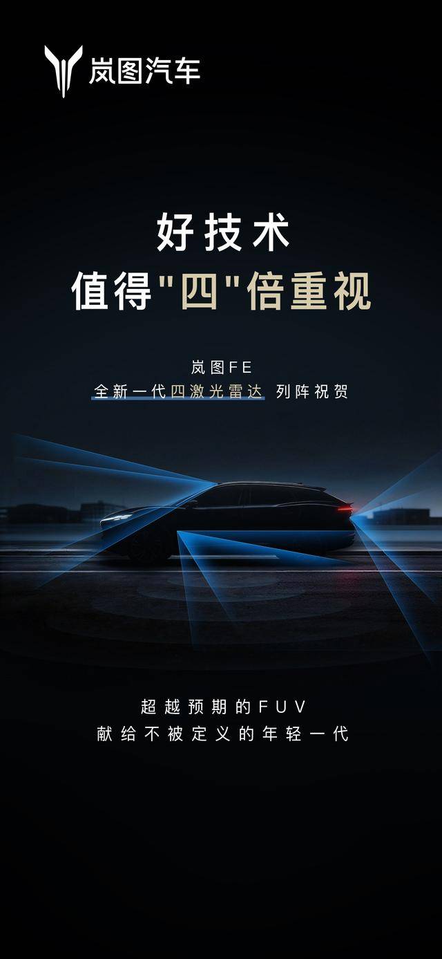 嵐圖FE的走紅始于網絡社區的創意傳播,"四激光法拉利"的戲稱背后,折射出年輕消費者對智能駕駛技術的狂熱追捧。根據官方披露的產品規劃,這款定位"叛逆新作"的FUV車型,將搭載與尊界同源的激光雷達解決方案,形成從硬件到算法的完整技術閉環。其獨特的四雷達布局不僅強化了前向感知能力,更通過側向雷達的補充覆蓋,構建起360度無死角的環境感知網絡。