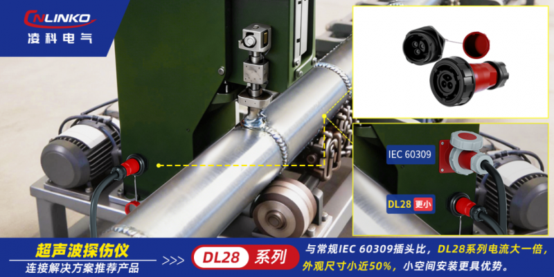 針對上述嚴苛要求,凌科電氣年度旗艦產品DL28系列工業級大電流連接器為超聲波探傷儀提供了專業的電氣連接解決方案。該系列產品已通過TUV、CE專業認證,在探傷儀領域獲得廣泛應用。