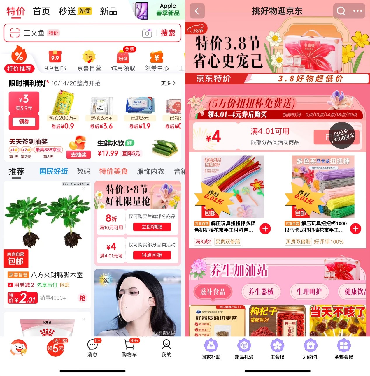 除了5萬份扭扭棒0.01元購的專屬福利,京東3.8節期間,京東特價頻道還同步上線多重驚喜。3月7日活動當天,頻道精選多款養生好物、美妝護膚、家居放松類產品,以實惠價格回饋消費者,讓大家能輕松購入品質好物,犒勞自己,向家人朋友傳遞心意。