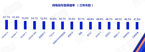 數據顯示,三年車齡純電車型整體保值率集中在47%-62%區間,頭部品牌與中腰部陣營差距明顯。特斯拉的領先地位得益于其直營模式帶來的價格透明度、長期積累的技術口碑,以及完善的二手車流通體系。這些因素使其在新能源市場競爭加劇的背景下,仍保持較強的抗跌能力。