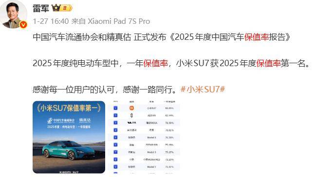 對比今年1月發(fā)布的《2025年度中國汽車保值率報告》,小米SU7的排名變化尤為引人注目。彼時,該車型以86.05%的保值率位居年度純電車型榜首,雷軍還曾轉(zhuǎn)發(fā)相關(guān)報告以示肯定。然而,短短一個月后,其保值率出現(xiàn)明顯下滑。業(yè)內(nèi)分析指出,此次數(shù)據(jù)統(tǒng)計周期為單月,與年度報告的時間維度不同,但市場因素對保值率的影響不容忽視。