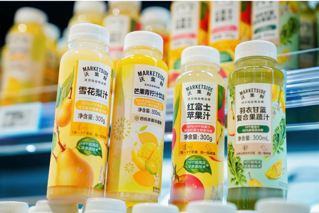 沃爾瑪的轉型離不開對自有品牌"沃集鮮"的重點打造。自2019年推出以來,沃集鮮的產品線不斷豐富,SKU數量從最初的幾十款增長至近千款,覆蓋糧油、生鮮、食品等多個高頻消費品類。在門店中,沃集鮮產品被擺放在顯眼位置,占比顯著提升,成為吸引消費者的重要因素。