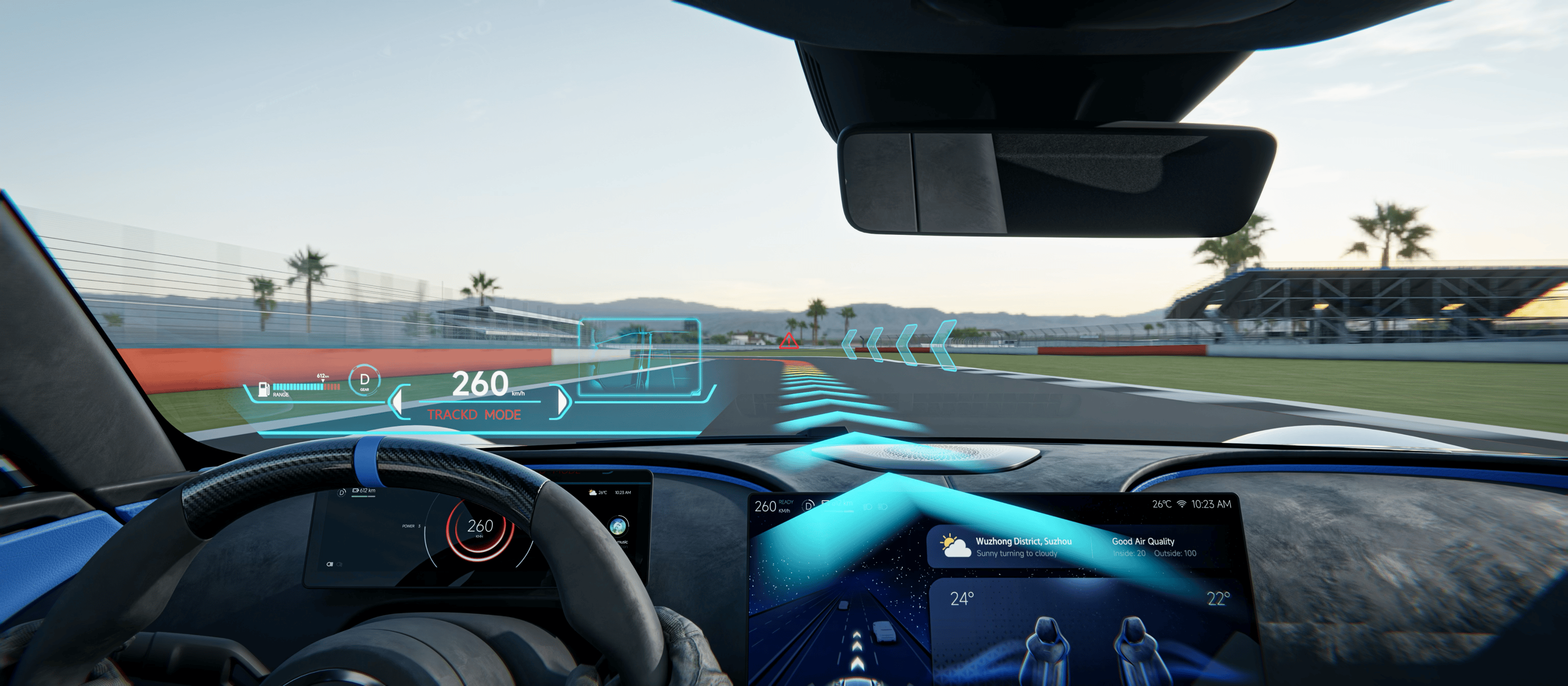 性能方面,STAR MATRIX預搭載4臺1200V高壓580kW永磁同步電機,動力表現備受期待。其核心亮點在于首創的AI Coach + AR Assistance Driving System。這一系統突破了傳統駕駛輔助的局限,將AI決策與AR可視化技術深度融合,為駕駛者提供“看得見的智能”體驗。通過實時數據投影與智能指導,該系統顯著提升了駕駛安全性與便捷性。