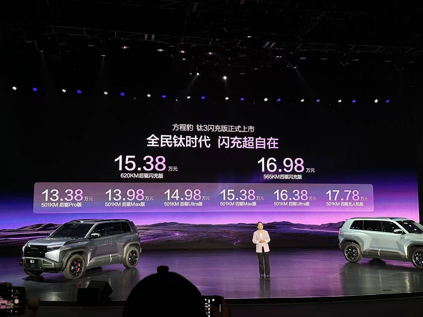 方程豹品牌旗下鈦3閃充版正式登陸市場,推出后驅版與四驅版兩款車型,官方指導價分別為15.38萬元和16.98萬元。作為該系列新增車型,新車在三電系統、智能化配置及越野性能方面實現全面升級,主打年輕個性化市場,定位緊湊型純電SUV。
