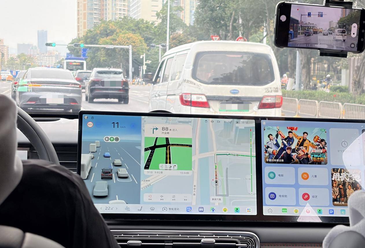試駕過程中,卓馭高悟性端到端4.0智駕系統展現出了鮮明的“老司機”駕駛特征。在變道、非機動車避讓、違停車輛繞行等常規場景中,系統操作果斷且流暢,毫無傳統智駕系統的機械感,完全貼合真實道路的通行邏輯。特別是在多車道等待紅綠燈時,系統能夠自主識別各車道車流密度,主動選擇車輛最少的車道,展現出對路況的靈活判斷能力。該系統的預判能力和防御性駕駛能力也十分出色。當行人或外賣小哥剛走上人行道,尚未行至車輛前方時,系統便能提前感知并緩慢減速,做好防御性駕駛準備,這一表現極大地提升了駕駛安全性。