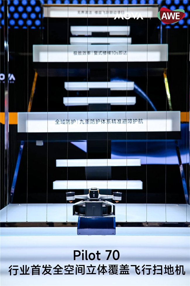 MOVA Pilot 70創新融合飛行模組,打造出全球首款無界飛行掃地機,將清潔維度從平面二維拓展至三維全域,實現對復式玻璃頂等高空區域的自動化覆蓋。