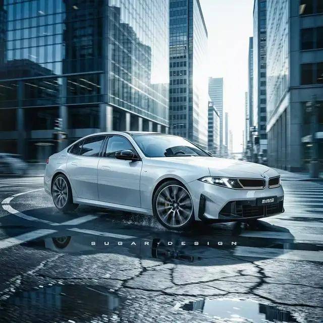 Sugar Design制作的渲染圖揭示了新一代3系的外觀設計方向。新車前臉雖沿用新世代(Neue Klasse)家族語言,但大燈組與雙腎格柵的造型與i3形成微妙區分。下部熏黑前保險杠成為視覺焦點,配合簡潔的車身側面線條,擺脫了現款車型復雜的筋線設計。車尾部分通過LED尾燈、黑色小尾翼及亮黑擴散器的組合,營造出恰到好處的運動氛圍。