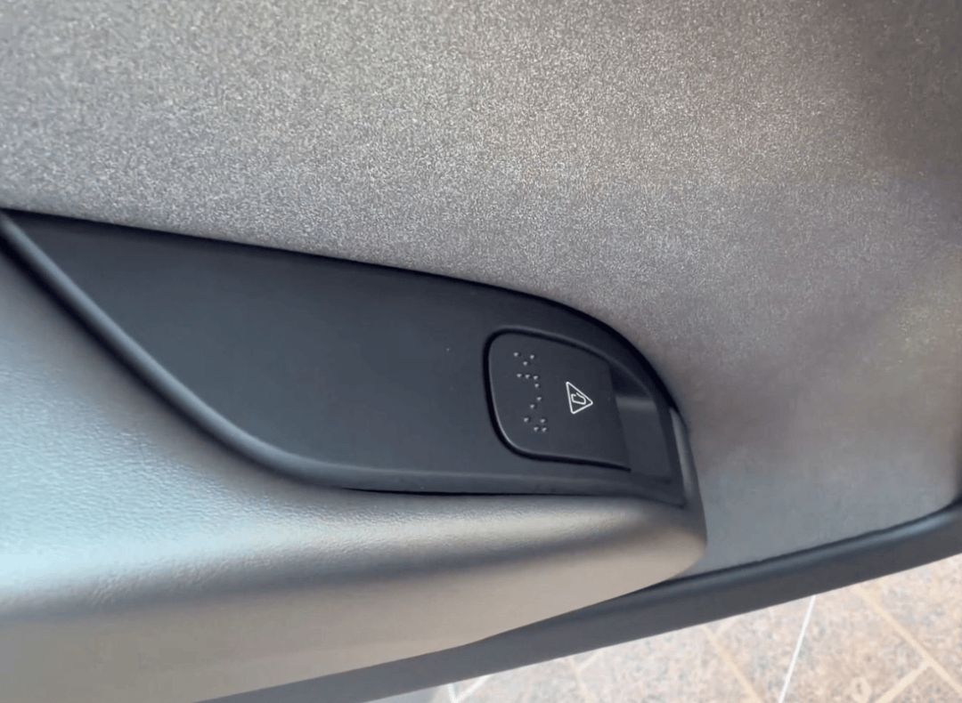 在近期舉辦的特斯拉自動駕駛快閃活動中,多名參與者實地體驗了Cybercab的盲文設計。現場照片顯示,車門把手和STOP按鈕的盲文標識清晰可見,操作邏輯符合視障人士使用習慣。有參與者表示,這些細節體現了科技產品對特殊群體的關懷,也讓自動駕駛服務更具包容性。