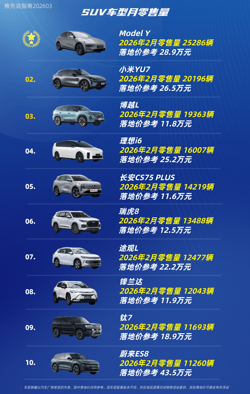 最新銷售數據顯示,特斯拉Model Y以25286輛的月零售量重返榜首,這款定價28.9萬元的中高端車型,主要吸引高收入職場人士、科技發燒友以及注重生活品質的年輕家庭。其成功得益于智能駕駛系統與豪華座艙的深度整合,滿足了消費者對前沿科技和駕乘體驗的雙重追求。緊隨其后的小米YU7、博越L、理想i6和長安CS75 PLUS,分別占據銷量排行榜第二至第五位,展現出不同技術路線產品的市場競爭力。