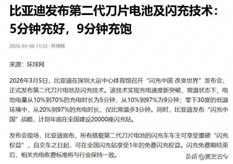 一場讓燃油車市場震動的新品發布會,讓比亞迪再次成為行業焦點。第二代刀片電池與閃充技術的組合,不僅刷新了電動車性能標準,更直接挑戰了傳統燃油車的生存空間。這項技術突破的核心,是實現了9分鐘將電量從10%充至97%的極速補能,充電效率首次與燃油車加油時間持平。