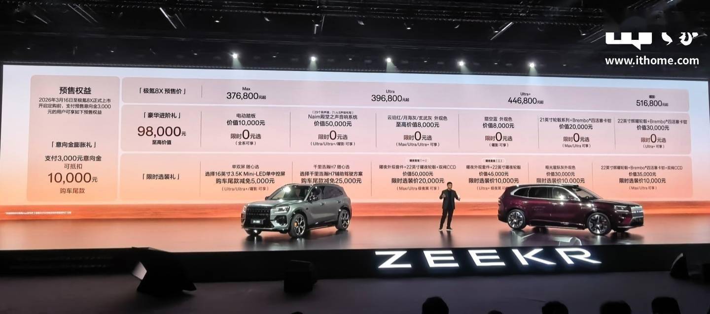 極氪8X旗艦電混SUV開啟預售:超強性能配豐富配置,37.68萬元起售