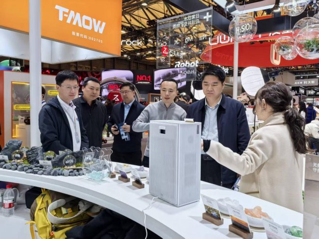 開幕當日,信陽市羅山縣領導一行蒞臨家里泉展臺,深入了解聯合中國地質大學(北京)共同研發的礦物重生專利技術及新產品矩陣。領導們對家里泉推動健康觀念、產學研結合的模式表示認可,并高度評價家里泉“以天然礦物科技重塑健康人居”的技術方向,充分肯定其在核心材料研發與成果轉化方面的創新模式。作為信陽重點引進的礦物科技標桿企業,家里泉依托與中國地質大學的產學研合作,構建了從礦物材料研發到終端應用的全鏈條創新體系,這種“政產學研用”一體化模式為地方產業轉型升級提供了可復制范本。