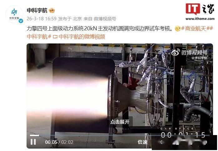 中科宇航力擎四號動力系統(tǒng):20kN主發(fā)動機(jī)與50N姿控發(fā)動機(jī)雙雙通過邊界試車考核