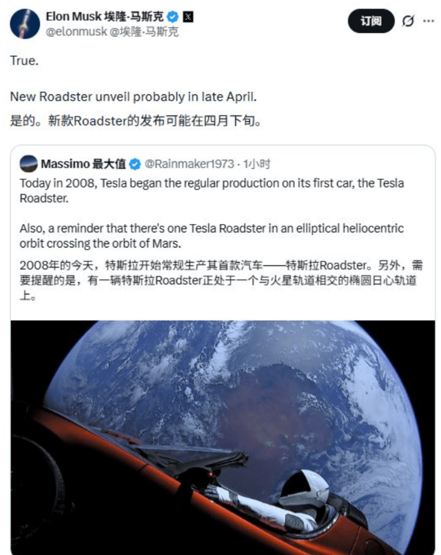 特斯拉的粉絲們終于迎來了期待已久的消息——那款讓無數(shù)人翹首以盼的“夢幻超跑”Roadster,終于有了明確的發(fā)布時間。據(jù)馬斯克在社交平臺X上的最新透露,這款跳票多次的車型大概率將于4月下旬正式亮相,這一消息讓等待多年的車迷們激動不已。
