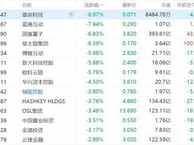 港股異動丨加密貨幣概念股集體下挫,雄岸科技跌超8%